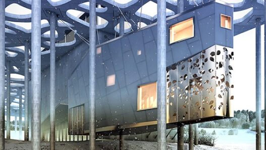 Помимо непосредственно самого «парящего» здания, данный объект включает