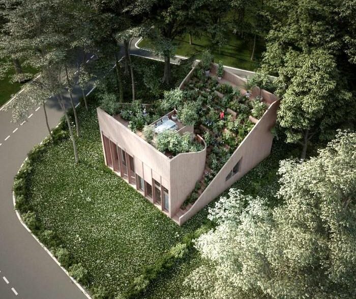 Проект этого инновационного дома разработали специалисты Penda Austria. Здание рассчитано на молодых людей, которые благодаря информационным технологиям могут работать удаленно. Авторы называют свой объект наглядным примером «архитектуры, которая кормит».