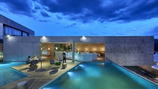 возведенных вокруг, бар-бассейн-галерея заметно выделяется своими необычными