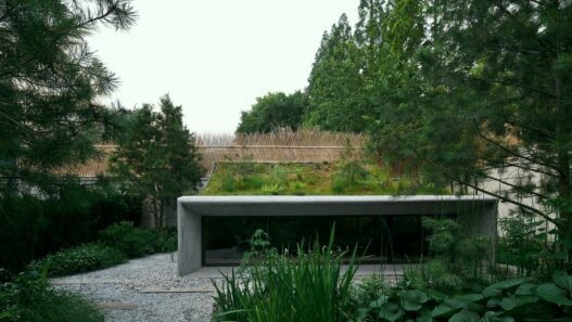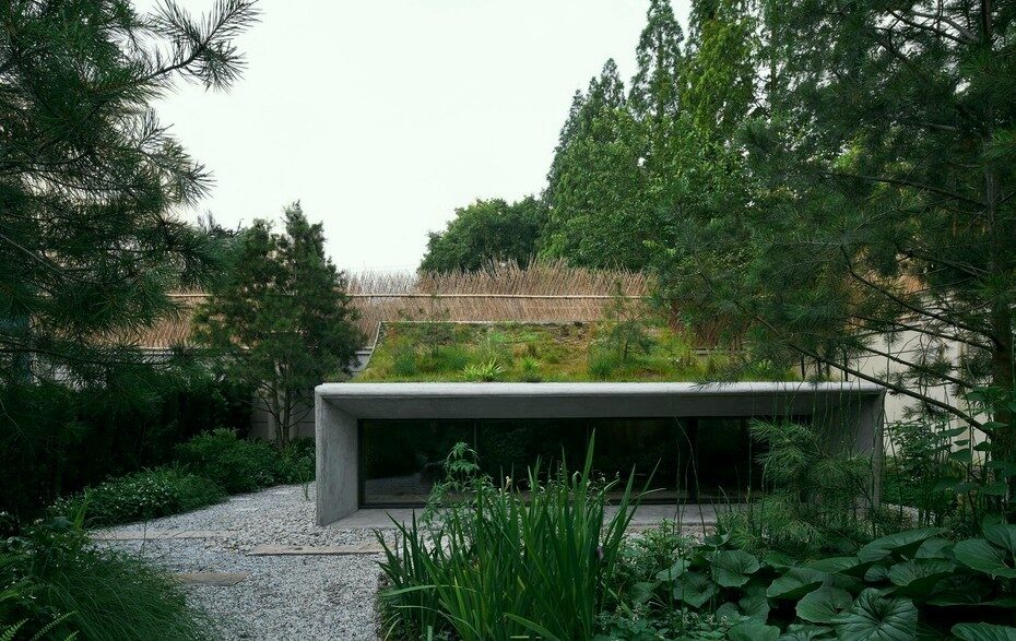 Проект получил название Underwood Teahouse. Площадь такого наполовину заглубленного сооружения с изогнутой крышей составляет всего 36 кв.м. Большое горизонтальное раздвижное окно выходит в сад. В полукруглую стену архитекторы встроили вход и специальную нишу, предназначенную для сидения.