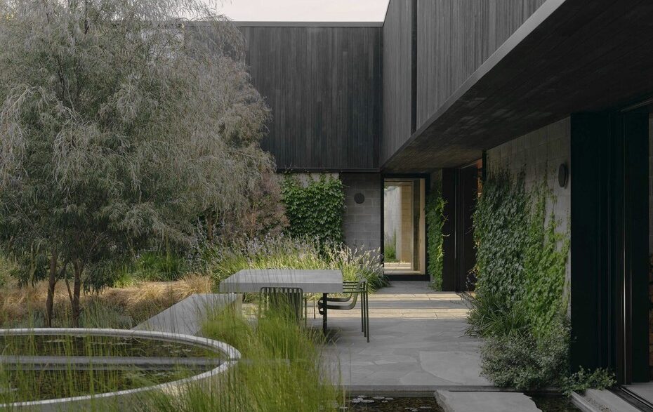 Большие окна позволяют практически стереть границы между интерьерами здания и окружающим природным ландшафтом. Внутренний дворик с садом является сердцем фермы, где всегда можно отдохнуть на свежем воздухе, любуясь красотой австралийской флоры.