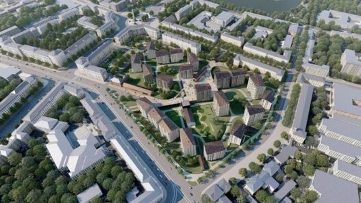 Судя по описанию проекта, общая площадь жилого комплекса составит 127 747 кв. м. Здесь разместится более 600 квартир. Застройка не будет высокоплотной, по высоте здания не будут превышать девяти этажей.