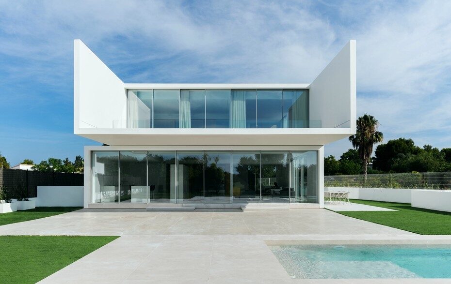 В испанской провинции Валенсия построили нестандартную трехэтажную резиденцию, из больших окон которой открывается прекрасный вид на расположенное рядом поле для гольфа.
