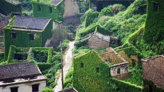 Фасады разрушающихся домов в этом поселке, находящемся на острове Шэншань, покрывает плющ. Такие зеленые «ковры» на стенах зданий привлекают только туристов, в то время как в самой деревне осталось всего 12 местных жителей. Пару десятилетий назад тут проживало примерно 2 тыс. человек, многие из которых занимались рыболовством. Но затем обитатели деревни покинули ее, некоторые из них перебрались в находящийся неподалеку мегаполис Шанхай, и жизнь в поселке замерла.