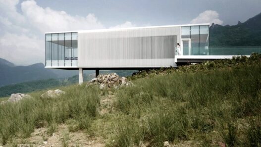 Нестандартное сооружение имеет семиметровый выступ, создающий визуальный эффект «парящего» в воздухе здания. Обеденный зал этого заведения общественного питания опирается только на две бетонные колонны.