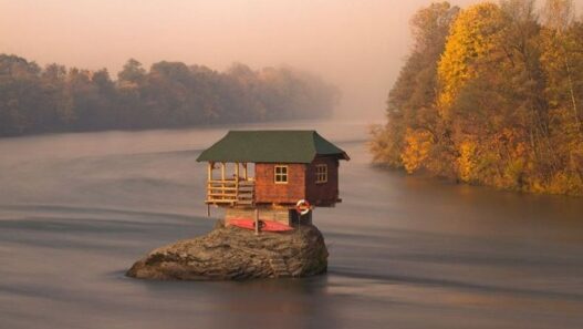 Этот дом стоит посреди реки Дрина вот уже 45 лет. В нем никто не живет, но он служит отличным местом для привала уставших каякеров, рыбаков и других путешественников. Однокомнатный домик оказался на редкость выносливым, пережив не одно наводнение и сильные зимние ветра.