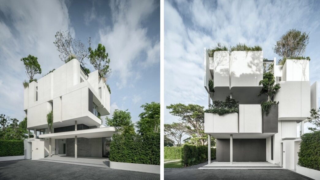 Специалисты IDIN architects решили переосмыслить традиционную городскую застройку в Бангкоке. Созданные ими белые дома украшают вертикальные «потоки» зеленых растений, поднимающиеся от уровня земли до сада на крыше. Предложенное архитекторами решение позволяет улучшить вентиляцию и естественное освещение жилых пространств.