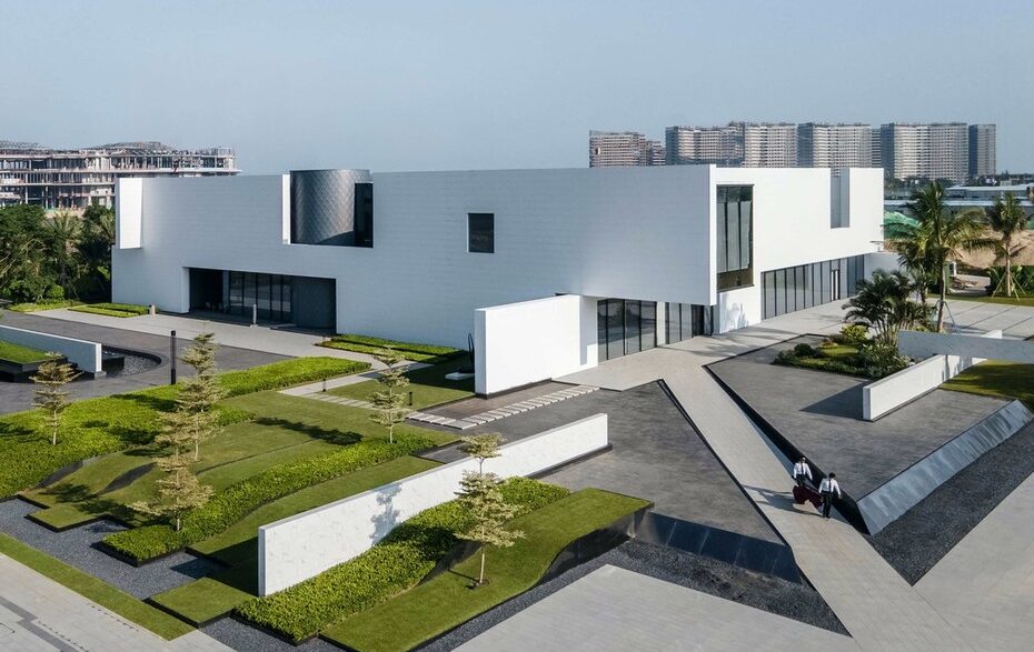 Спроектировало данное сооружение бюро AOE. Главные объемы здания здесь расположены в форме буквы L. Функционально объект состоит из двух частей: зона маркетинга и зона инвестиций. Поскольку тут проводятся различные культурные и иные мероприятия, то построенное здание отрыто для городских жителей. Кроме внутреннего двора в центре торговли также имеется терраса, с которой можно любоваться окружающим ландшафтом.