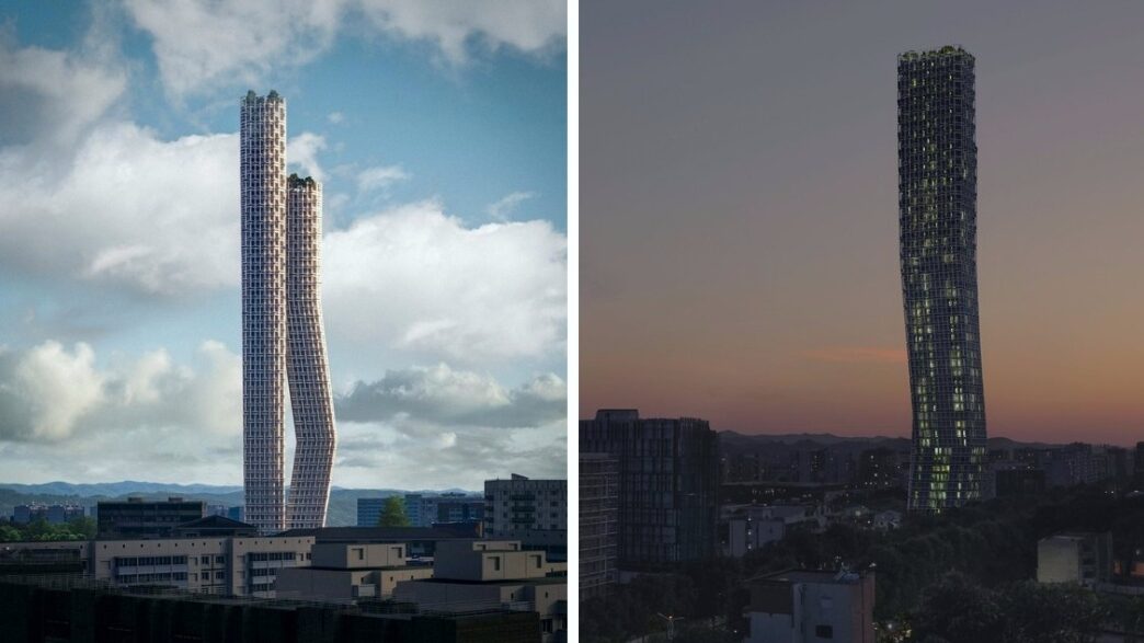 Проект такого масштабного сооружения для города Тирана (Албания) разработали специалисты архитектурной студии OODA. В новых кубовидных башнях планируется разместить офисные и коммерческие площади, а также отель. В наиболее высоком из подобных небоскребов предусмотрено 50 этажей. Силуэт комплекса получил изогнутую форму, которая делает похожим его на грациозную балерину и придает зданиям элегантный и запоминающийся внешний вид, помогая им гармонично вписаться в городской ландшафт. Дизайн фасадов с балконами и перилами был разработан в стиле традиционных албанских ковров.