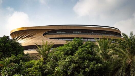 Речь идет о штаб-квартире компании Infinitus, реализующей препараты, созданные на основе лекарственных трав. Площадь построенного объекта, получившего название Infinitus Plaza, достигает 185 643 кв. м. Форма этого оригинального комплекса с внутренними дворами повторяет символ бесконечности. Фасады здания отделаны перфорированными панелями из алюминия.