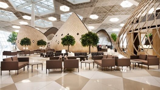 в аэропорту Баку такие коконы, заключалась в желании сделать его интерьер максимально