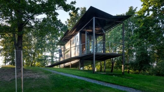 Мобильный дом, установка которого производится на колонны, разработали специалисты студии ŠA atelier (Литва).