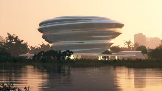 Площадь спроектированного архитектурной студией MAD здания составит 46 528 кв.м. Это сооружение получит форму облака, словно парящего над пышным тропическим лесом. Футуристический внешний вид такого объекта будет достигнут благодаря использованию при отделке его фасада серебристого пластика.