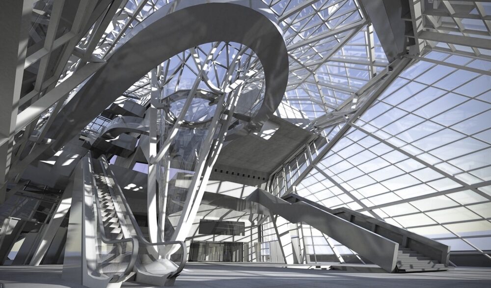 формы алмаза, кристалла и облака. Таким образом, здание будет состоять из трех