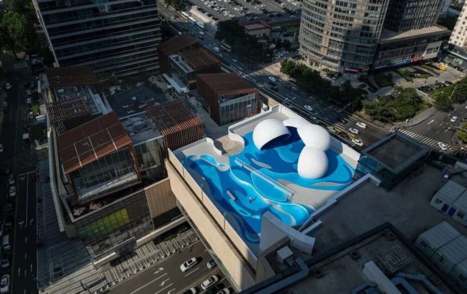 Сочетание различных волнообразных пиков и впадин, а также другие сложные поверхности не дают здесь спортсменам скучать. Разработанная планировка сооружения отличается множеством плавных изгибов, что должно напоминать океанские волны и усиливать ассоциации между скейтбордингом и серфингом. Белая сферическая постройка, расположенная на одной из сторон площадки, является зоной отдыха для посетителей.