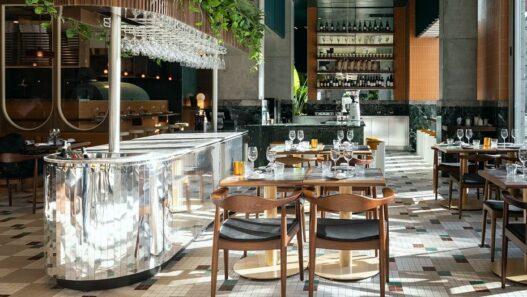 Следует отметить, что при разработке данного проекта архитекторов вдохновлял итальянский модернизм 60-х годов прошлого века. Специально для посетителей, которые из-за пандемии COVID-19 предпочитают брать еду навынос, возле кухни расположена узкая стойка и барные стулья. Рядом находится кафе Misu, где можно перекусить, не тратя на это много времени.