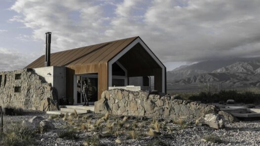 Общая площадь этого сооружения, расположенного в предгорьях Анд, составляет 170 кв. м. Объект под названием Stone House состоит из двух зданий, соединенных прозрачным переходом. Один объем используется как общая для всех жильцов зона, а второй — для спален.
