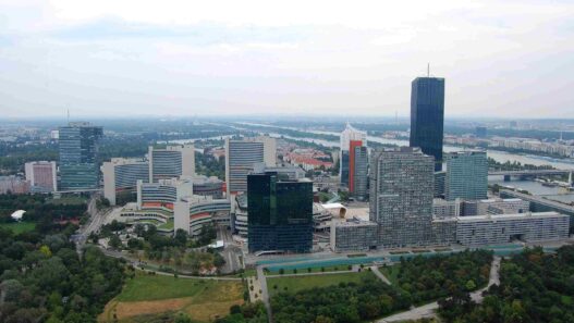 Деловой центр Donay City, который назван по имени реки Дунай, расположен к северо-востоку от центра Вены, практически на окраине города. Раньше здесь был пустырь и даже городская свалка. Сюда удобнее всего добираться на метро.