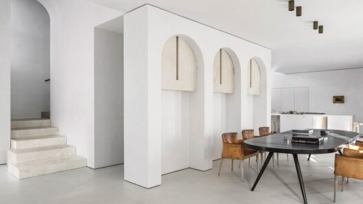 В столовой установлен антикварный стол и кожаные стулья. Длинный коридор теперь украшает множество арок, которые разделены окнами. В особняке, пережившем реконструкцию, имеется внутренний дворик, куда ведут двустворчатые двери.