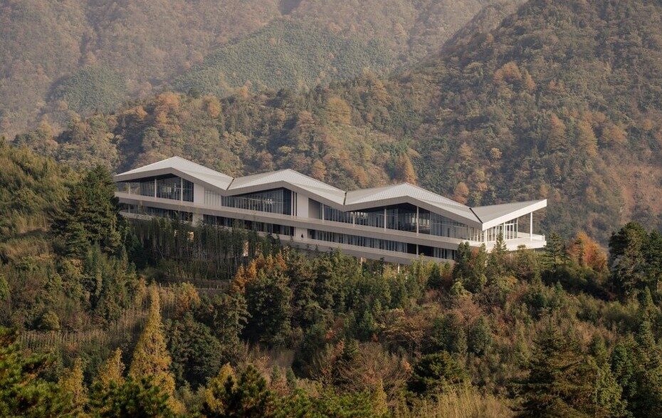 Необычный отель, появившийся в регионе Аньцзи (КНР), спроектировали специалисты MORE Architecture. Площадь подобного сооружения, призванного служить развитию внутреннего туризма, достигает 6000 кв. м. Здание установлено на стальных колоннах над холмами на высоте восемь метров, а свободное пространство под ним занимает бассейн и раздевалки. Большая цинковая крыша выполнена в стиле традиционной китайской архитектуры.