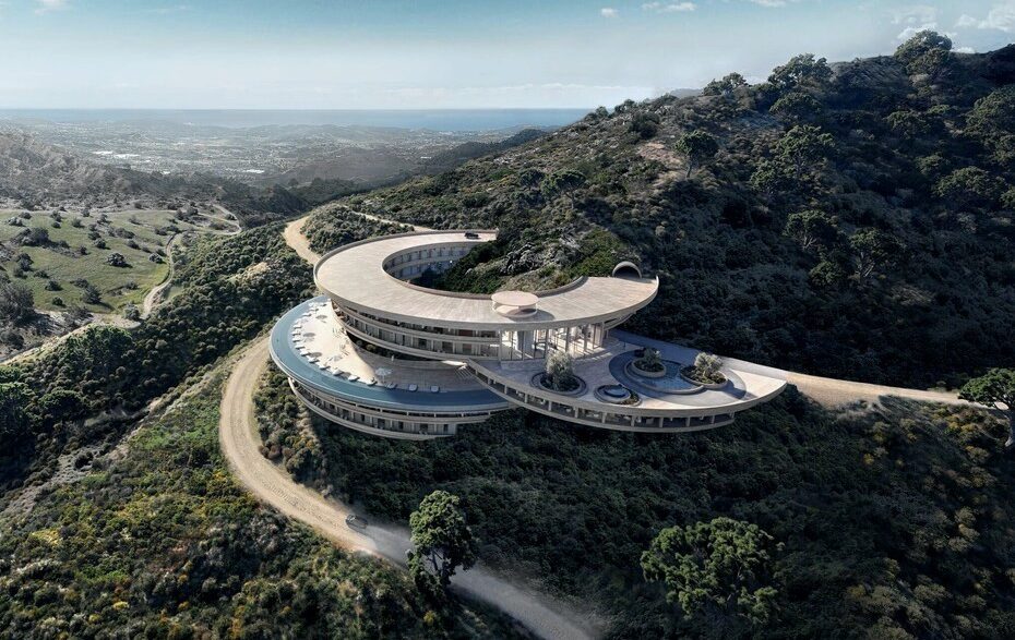 Этот нестандартный масштабный объект, в котором предусмотрено 320 номеров для гостей, может появиться на острове Кипр. Круглые здания данного сооружения, интегрированного в горный ландшафт, планируется построить из местной древесины и переработанных материалов. В двух из трех корпусов будут находиться гостевые номера, а в среднем кольце разместят главный вестибюль, рестораны и оздоровительный центр. По изогнутому краю постройки должен пройти ландшафтный бассейн.