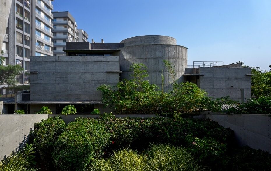 Проект этого трехэтажного бетонного здания площадью 848 кв. м. разработала студия Matharoo Associates. Дом построен рядом с высокими многоэтажками, поэтому архитекторы стремились обеспечить максимальную конфиденциальность частной жизни его обитателей. С южной стороны особняка разбили сад, куда ориентировано большинство окон здания.