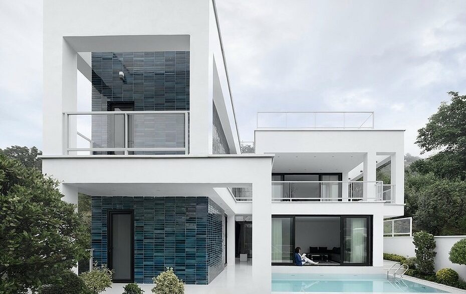 После произведенных специалистами AsNow Design & Construct работ площадь этой виллы достигла 510 кв.м. Теперь здесь имеется четыре уровня. На самом нижнем из них расположена автопарковка и служебное помещение, оборудованное лифтом. Второй этаж занимают комната уборщика, техническое отделение и еще одно служебное пространство. На третьем уровне резиденции находятся спальни, гостиная и гардеробная. Еще выше располагаются приемная и столовая, кухня, терраса и дополнительное служебное помещение.