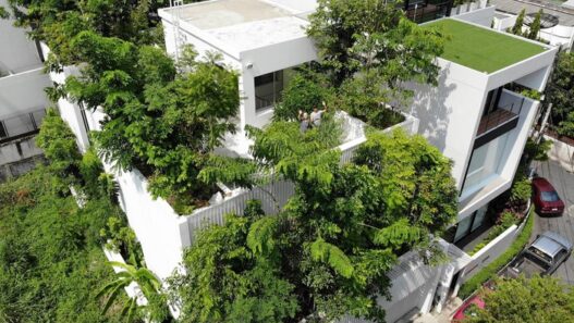 Площадь трехэтажного сооружения Forest House, построенного в Бангкоке, составляет около 300 кв. м. Крыши и террасы такого особняка украшает множество живых растений и свыше 100 деревьев. Данный объект, представляющий собой миниатюрную экосистему, состоит из трех «кубов», разделенных двумя внутренними двориками. Планировка помещений предусматривает максимальное использование здесь естественного освещения и вентиляции.
