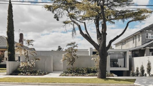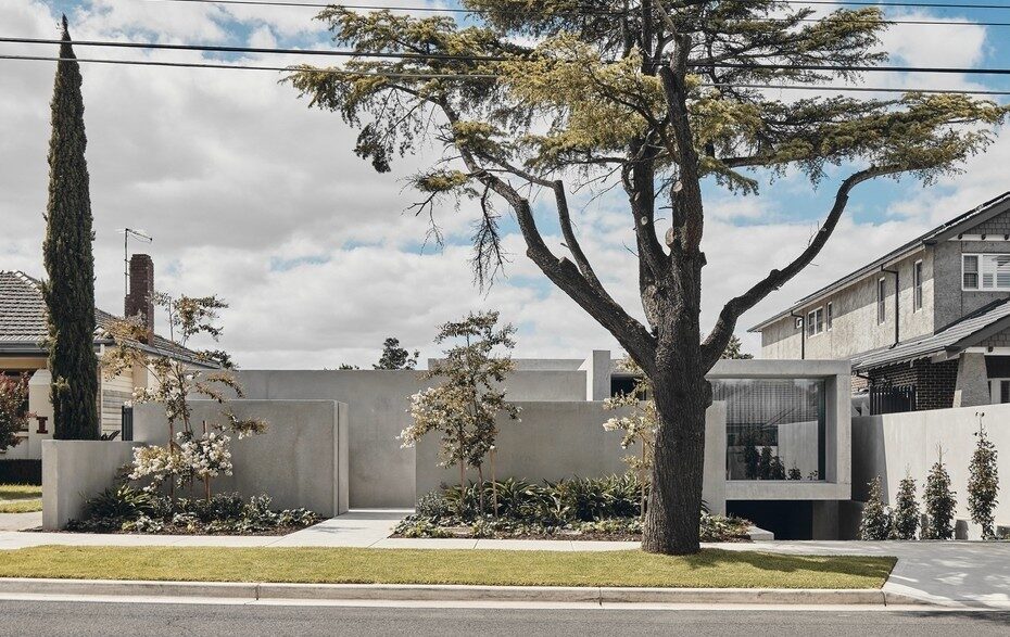 В Австралии построили бетонный особняк The Courtyard Residence с пятью спальнями, открытым бассейном и садом.