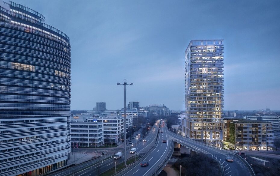 Данный объект, который появится в Дюссельдорфе, будет включать башню высотой 90 метров и два более низких здания. Общая площадь такого комплекса, оснащенного системой управления дождевой водой, составит 46,5 тыс. кв. м. Архитекторы предусмотрели здесь модульную структуру и максимальную гибкость планировки и расположения квартир. Площадь изолированных жилых помещений тут составит от 30 до 130 кв. м.