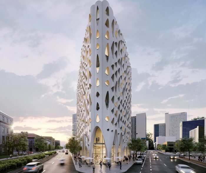 Бюро Studio Gang из США представило проект гостиницы Populus, высота которой составит 48 метров.