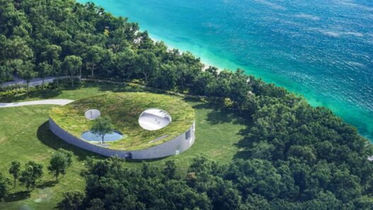 Проект здания в форме диска разработал для этого отеля архитектор Су Фудзимото из Японии. Вилла получит наклонную крышу с зеленым газоном и большими круглыми отверстиями. В самой нижней точке такой кровли появится пруд и дерево. Крыша будет доступна для постояльцев гостиницы, которые смогут гулять прямо по ней.
