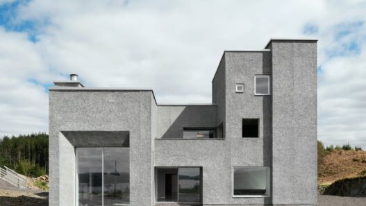 Этот проект его авторы решили назвать Hundred Acre Wood. Жилое здание, внешне немного напоминающее старинный замок, предназначено для многодетной семьи. Снаружи стены такого сооружения покрыты декоративной стеклянной крошкой, полученной из переработанных телевизионных экранов, что позволило разработать не требующий особого ухода вид отделки, напоминающей гальку. Архитекторы уверены, что цвет такого необычного фасадного материала отлично подходит для угрюмого шотландского ландшафта.