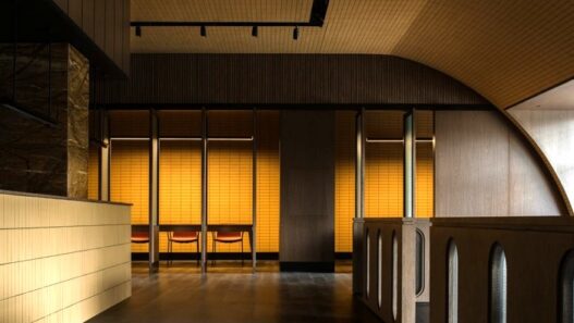 Чтобы создать у гостей ощущение респектабельности и спокойствия для оформления здешних интерьеров были выбраны неяркие цвета, а также керамика и древесина. Освещение в общественных зонах с поверхностями кремового оттенка приглушенное. В созданных авторами проекта пространствах гостиницы прямоугольники различных размеров и пропорций гармонично сочетаются с покатыми потолками, декоративными шарами и т.п.