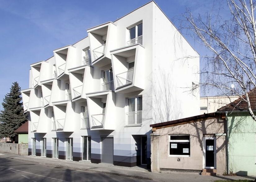 Жилой дом с фасадом весьма оригинальный формы построили в словацком