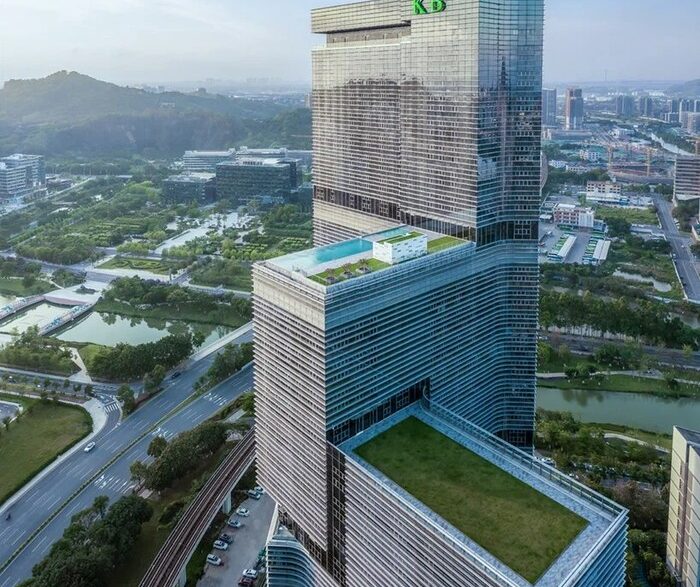 В китайском районе Наньша, являющемся зоной свободной торговли, завершается возведение небоскреба Nansha Kingboard Plaza, пишет Designboom.