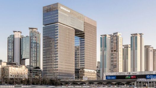 В необычной башне разместилась штаб-квартира южнокорейской корпорации Doosan Corporation. Кроме офисов здесь также предусмотрен фитнес-центр, конференц-залы, кафе, детский сад и музей истории Doosan.