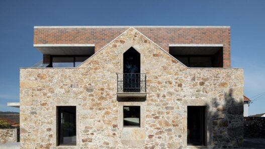 Существующее старое здание в португальской деревне Ромаригайнш теперь имеет нестандартную «вставку» — объем из красного кирпича, выступающий над прежней линией крыши. Возведенный особняк с двумя спальнями и винтовой лестницей, получивший название Box, в итоге не вышел за пределы первоначальной постройки. Размеры его окон полностью совпали с оригинальными проемами руин.
