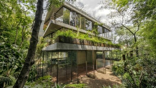 Студия Vertebral спроектировала эту резиденцию для последующего строительства на земельном участке, расположенном в Мехико. Трехэтажное здание из бетона и стекла окружает живописный сад с зарослями бамбука, а на его террасах установлены кашпо с экзотическими растениями. Вместо традиционных глухих стен здесь установлены панорамные окна, поэтому окружающая природа стала визуальным продолжением жилых помещений.