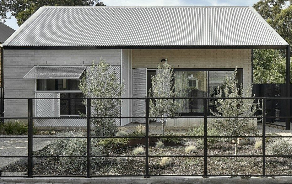 Одноэтажное жилое здание площадью 230 кв. м. возвели в пригороде Аделаиды (Австралия). Современный функциональный дом построен в прибрежном районе, отличающемся собственной неповторимой атмосферой. Объект состоит из двух сооружений, которые расположены перпендикулярно друг другу.