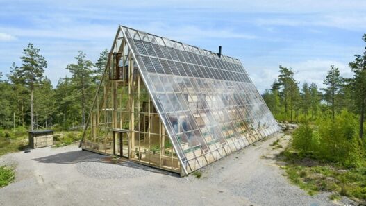 Построенный на берегу озера Венерн объект является полностью автономным. Проектом здесь предусмотрены солнечные панели, система сбора дождевой воды, а также очистные сооружения. Отопления тут производится с помощью дровяных каминов и печей. Питьевую воду жильцы оригинального особняка получат из скважины, которую строители пробурили на данном земельном участке.