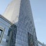 На первом этаже фасад здания полностью прозрачный, а выше — полупрозрачный.
