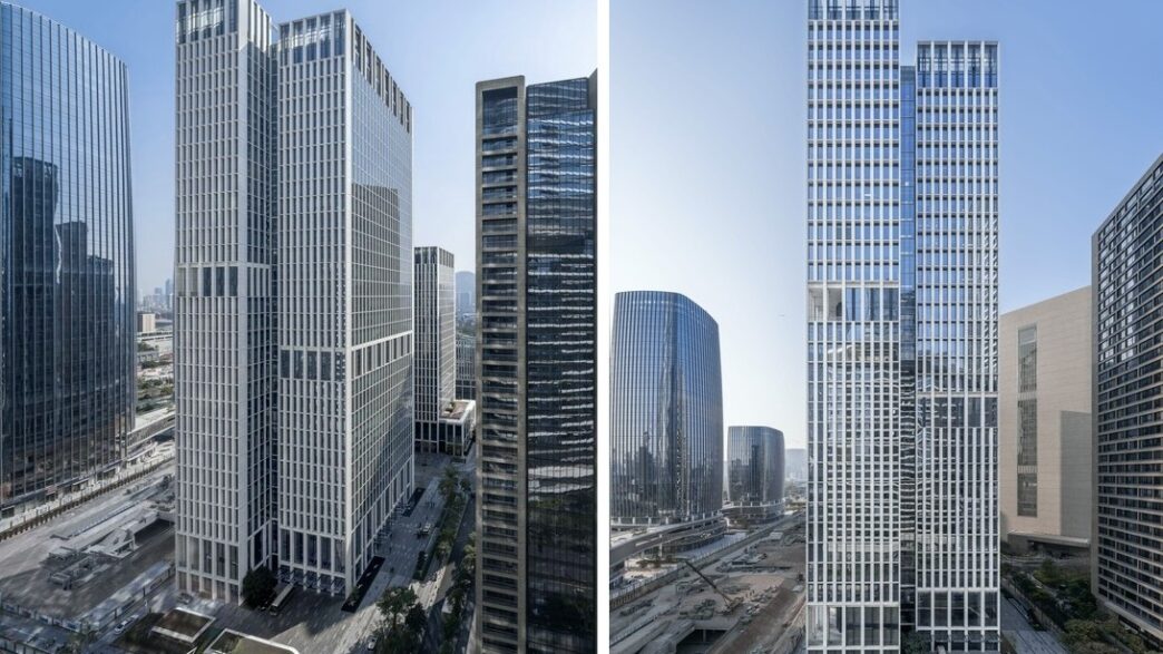 Офисный комплекс Shenzhen Qianhai Towers состоит из трех небоскребов, высота которых постепенно снижается с севера на юг. Для создания динамики каждый из данных объемов разделен надвое, и эти части зданий оказались немного сдвинутыми относительно друг друга. Специальные пешеходные мосты соединяют все башни на уровне третьего этажа. Они также связывают новый комплекс с соседними сооружениями, зелеными зонами и автовокзалом.