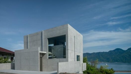 Особняк с балконом возвели в Хиросиме на крутом склоне. Из его окон открывается живописный вид на морские дали. В необычном здании три этажа, причем планировка помещений тут меняется в зависимости от уровня. Внизу распложена кухня и гостиная, а выше – спальни и другие комнаты. Также здесь имеется узкий лестничный колодец.