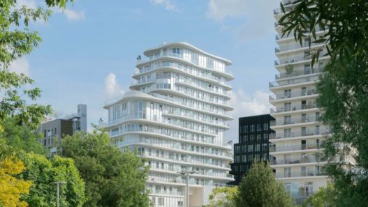 Причудливые изгибы экстерьера многоэтажного энергоэффективного дома