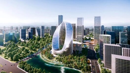 Небоскреб O-Tower предназначен для корпорации Oppo (КНР), которая разместит здесь свою штаб-квартиру в области исследований и разработок. Новый объект имеет форму петли, символизирующей приверженность базирующейся тут компании бесконечным инновациям.