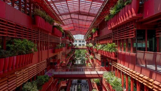 Проект этого необычного сооружения, расположенного во Французском квартале, разработали специалисты Ateliers Jean Nouvel. Фасады здания, имеющего внутри пешеходную улицу, украшают живые растения в горшках из глины. Образовавшийся проезд накрыли стеклянной крышей, а между разными корпусами проложили небольшие мосты.