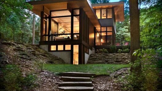Современный дом, спроектированный студией Searl Lamaster Howe, находится в заповеднике Лоулесс Парк. Поэтому архитекторы стремились максимально сохранить здешний ландшафт и деревья. Общая площадь сооружения составляет 225 кв. м.