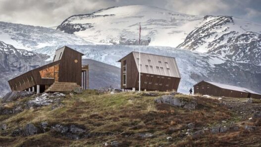 В норвежском национальном парке Юстедалсбреен из сосновой доски и клееного бруса построили девять компактных зданий.