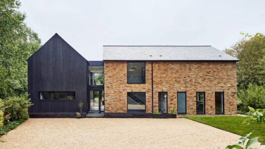 В свое время к кирпичному дому, возведенному несколько десятилетий назад в британском графстве Бакингемшир, пристроили сооружение с остроконечной крышей. Там долгие годы размещался гараж, собственники недвижимости уже планировали его снести, однако архитекторы убедили их превратить данный объект в современную кухню.